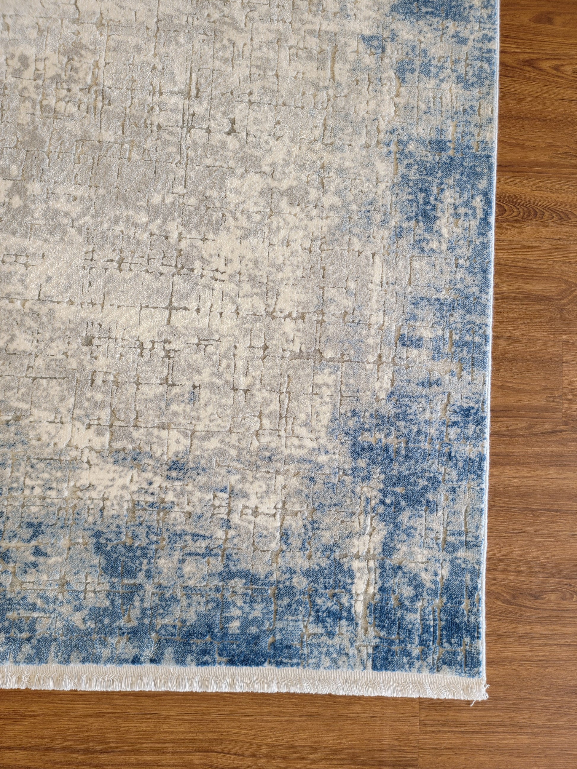 Maxim Abstract Area Rug. White, Platinum, and Cobalt Blue