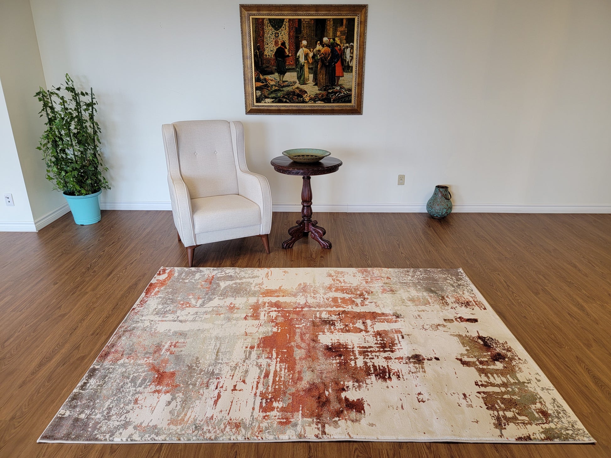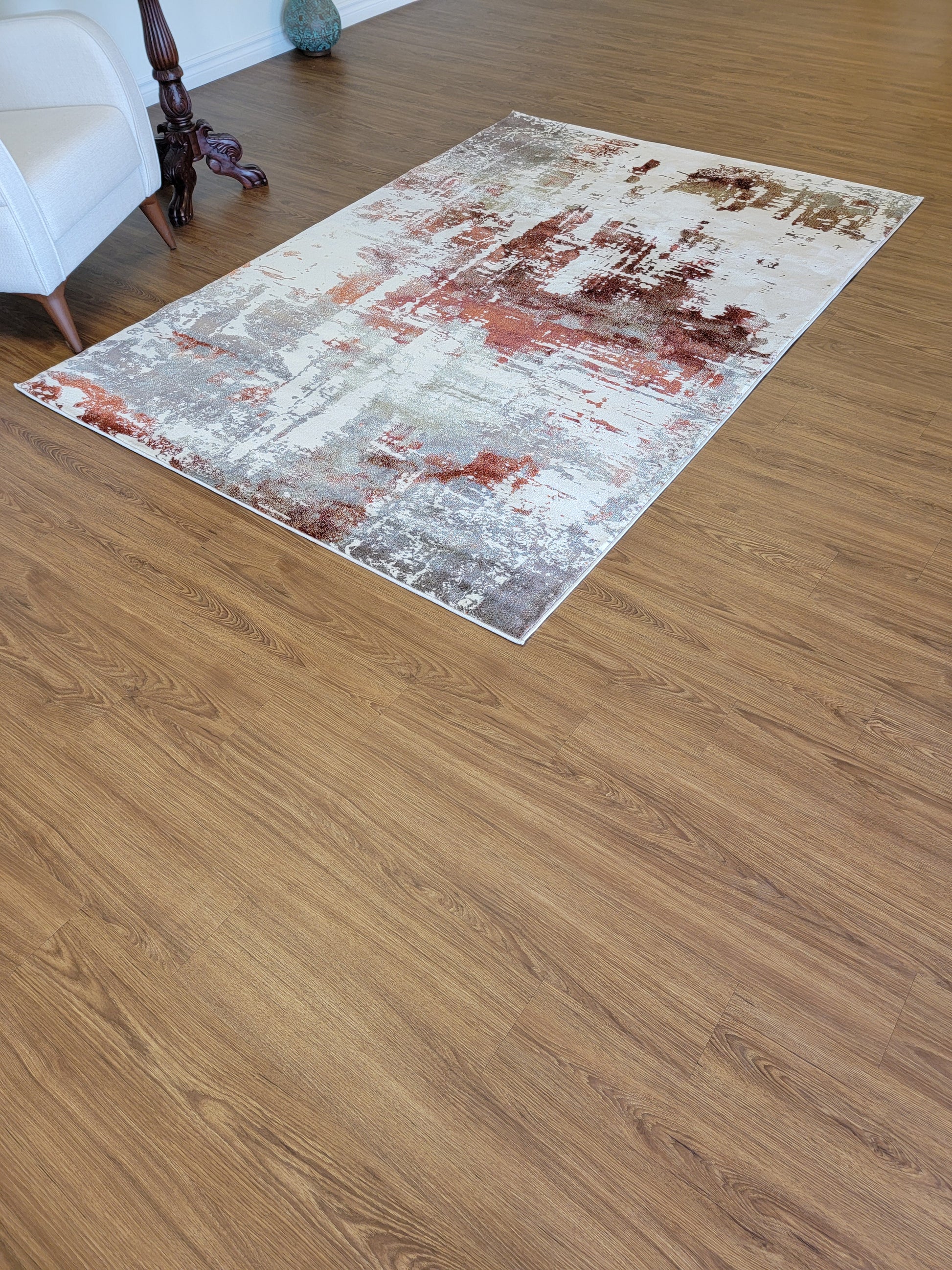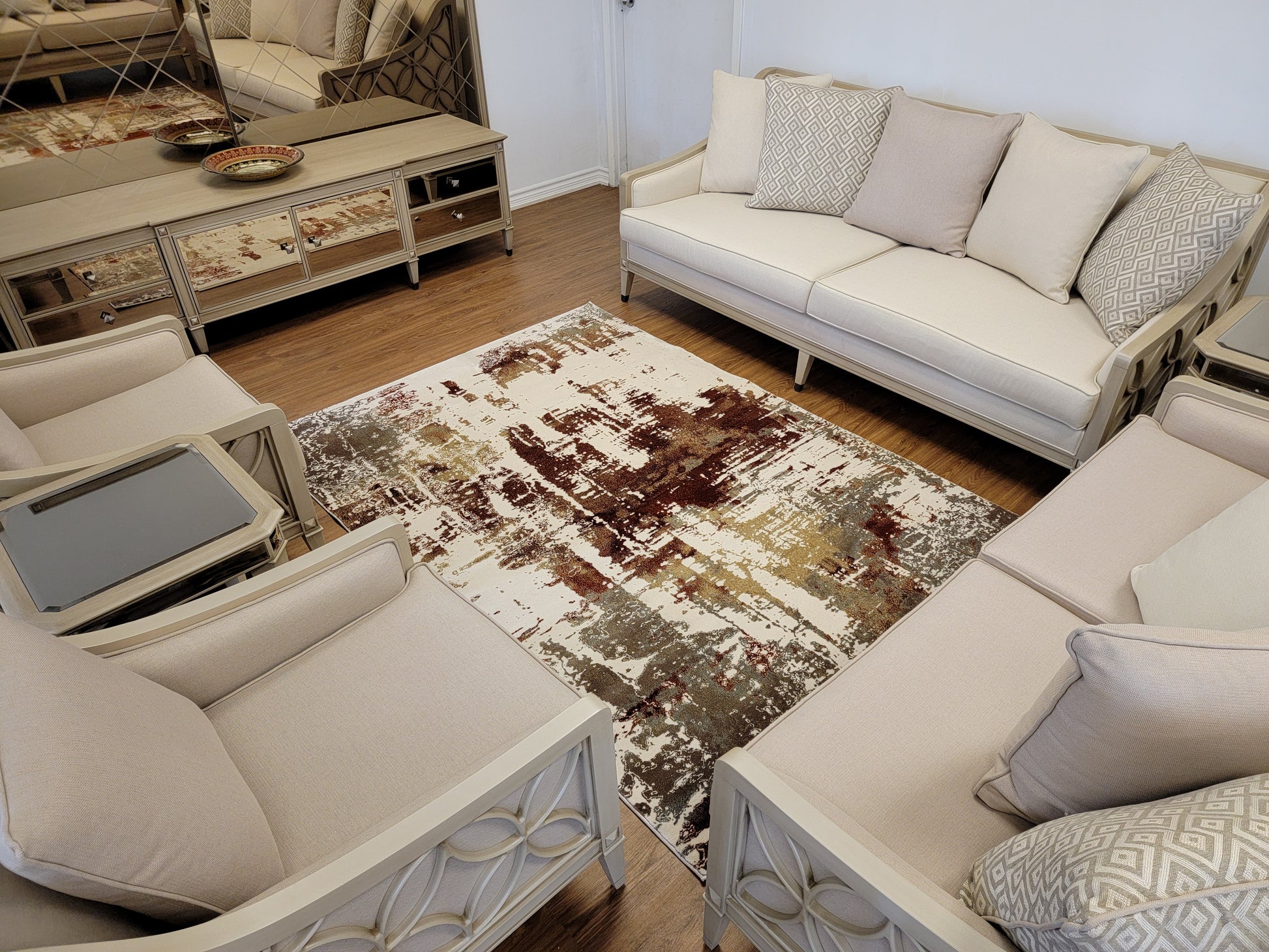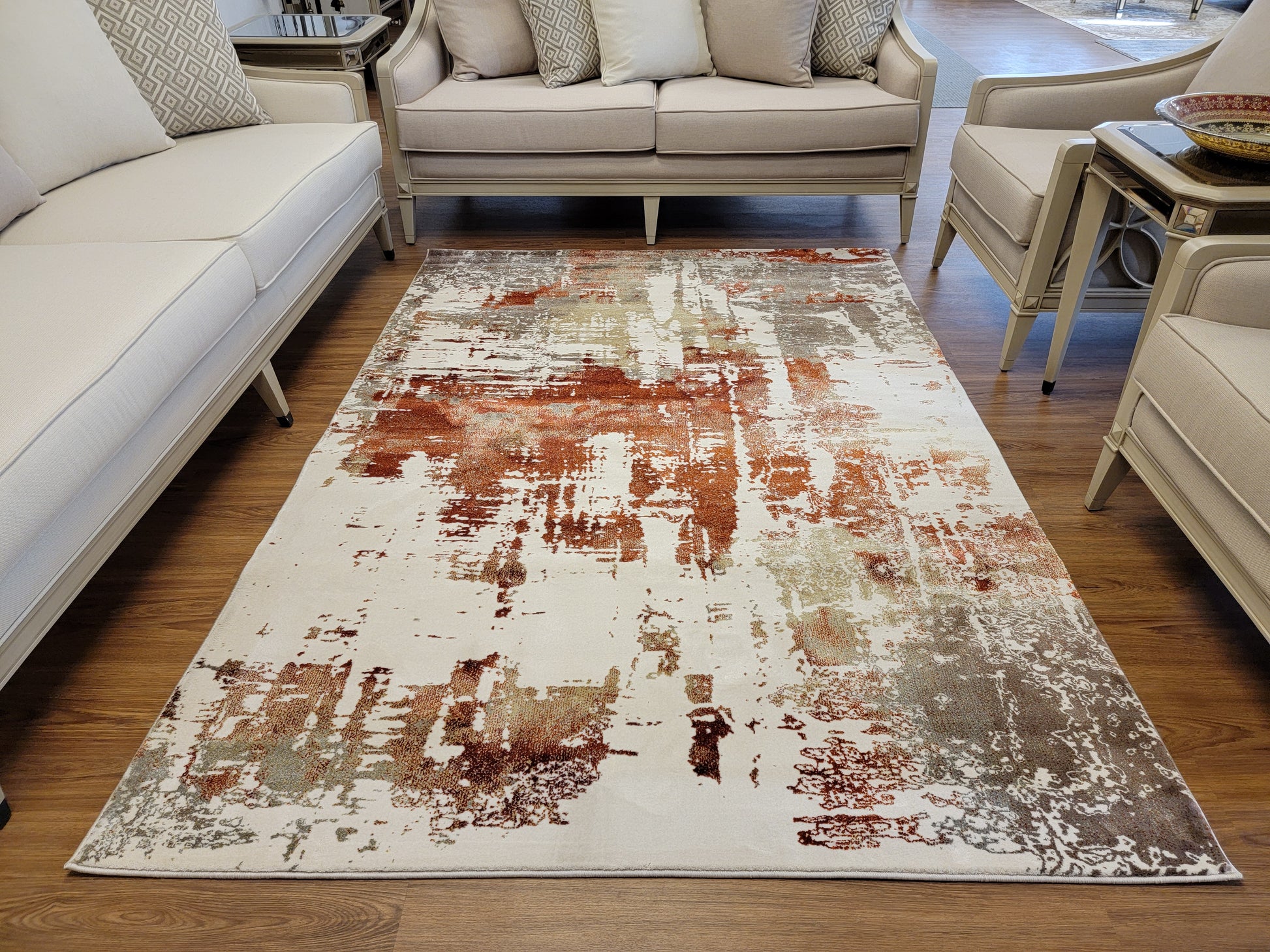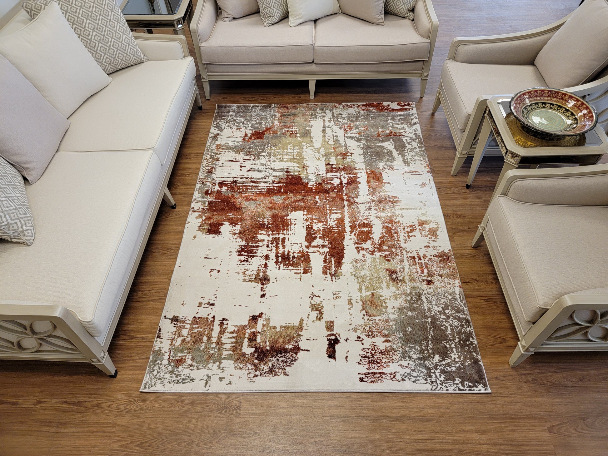 Olimpos Abstract Area Rug. Ivory, Golden Brown, and Copper