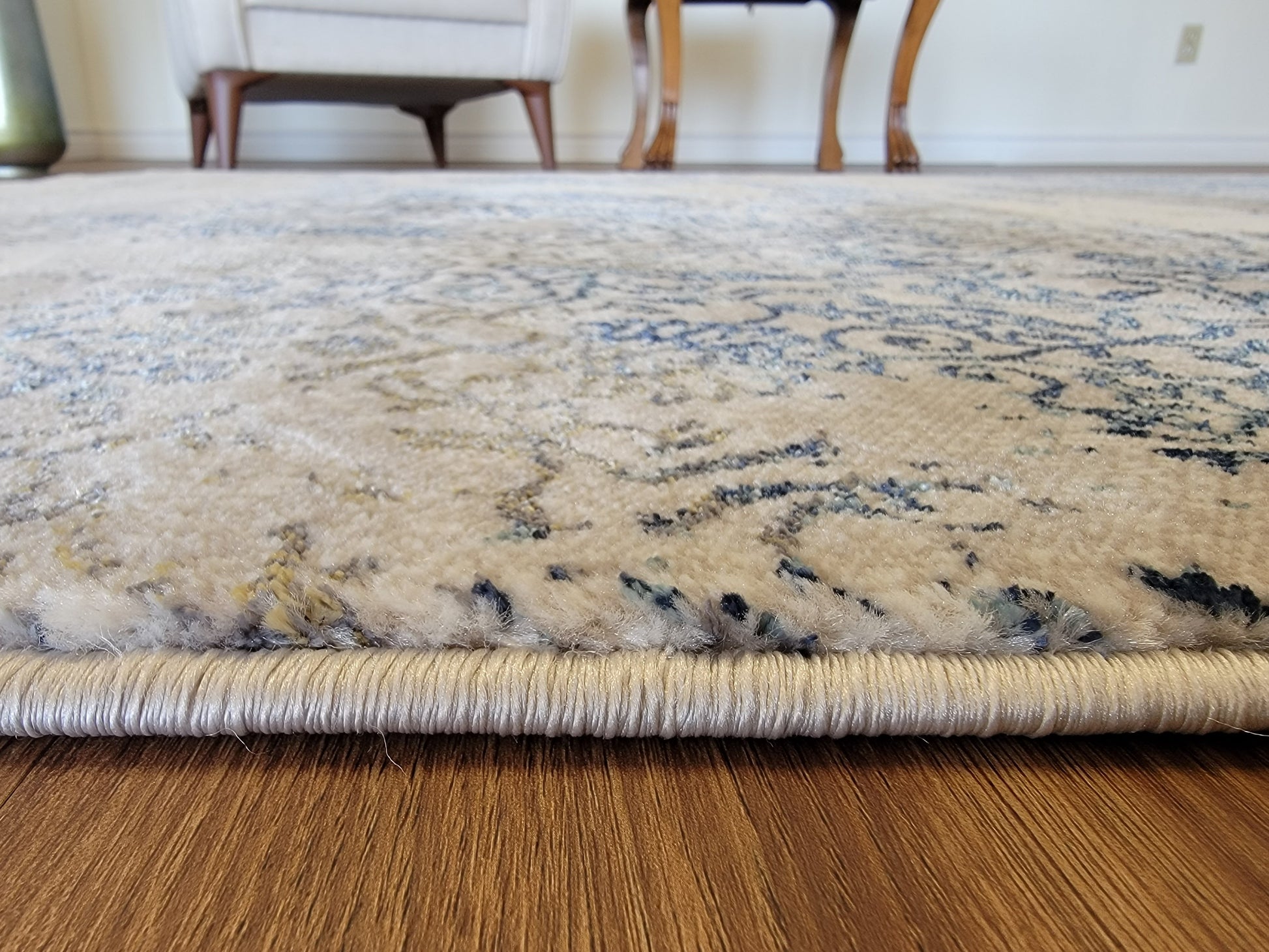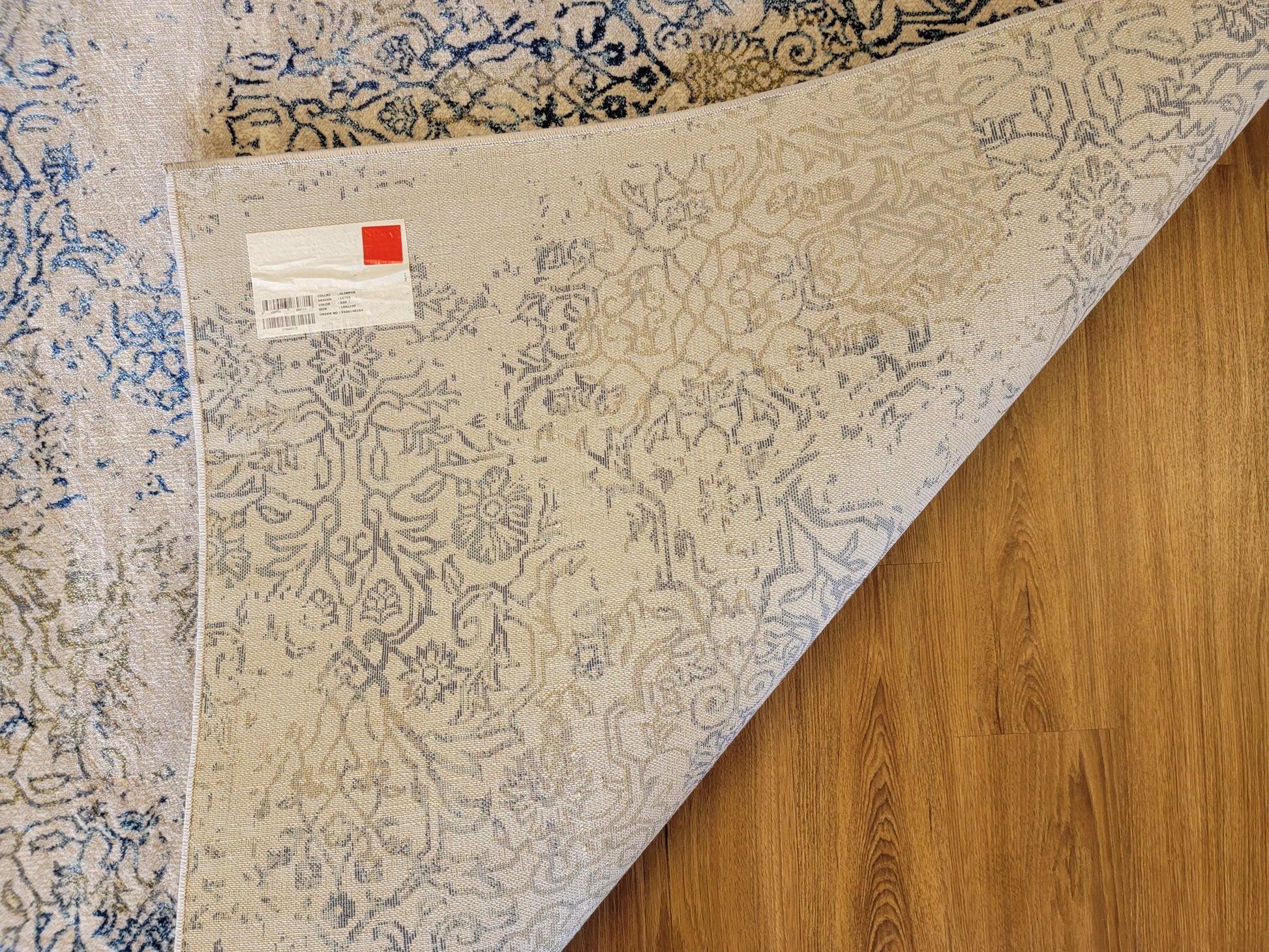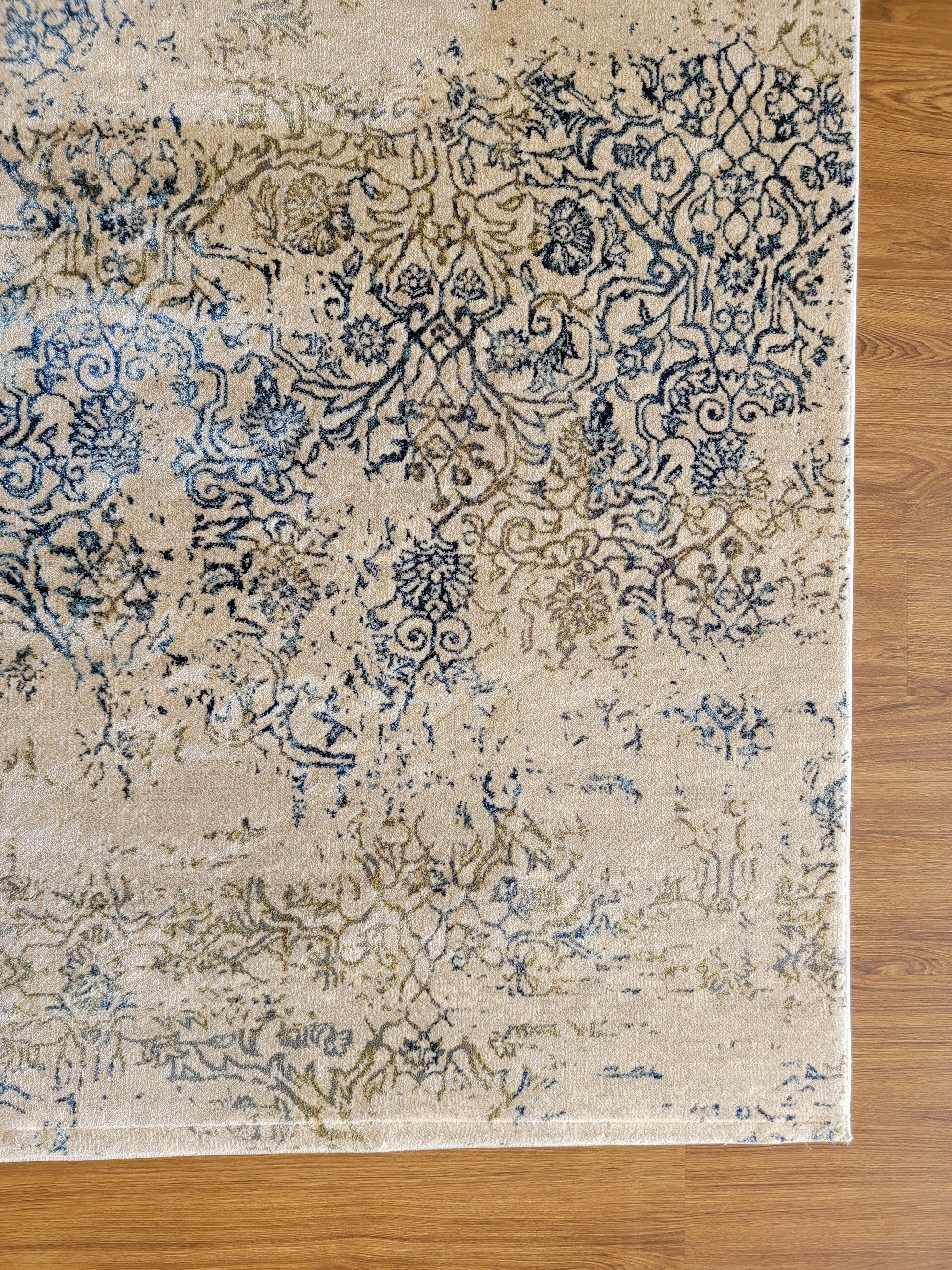 Olimpos Damask Area Rug. Beige, Navy, and Olive Green