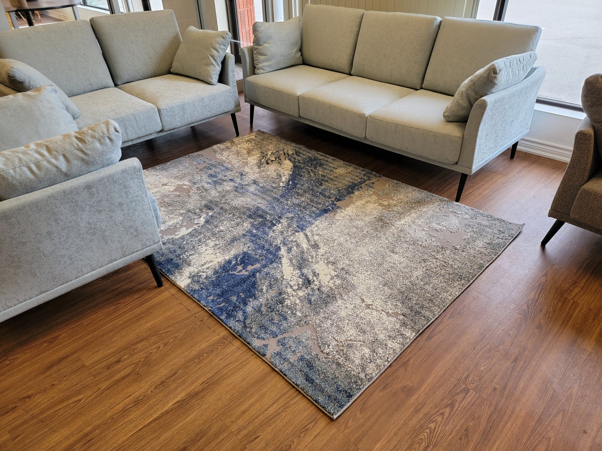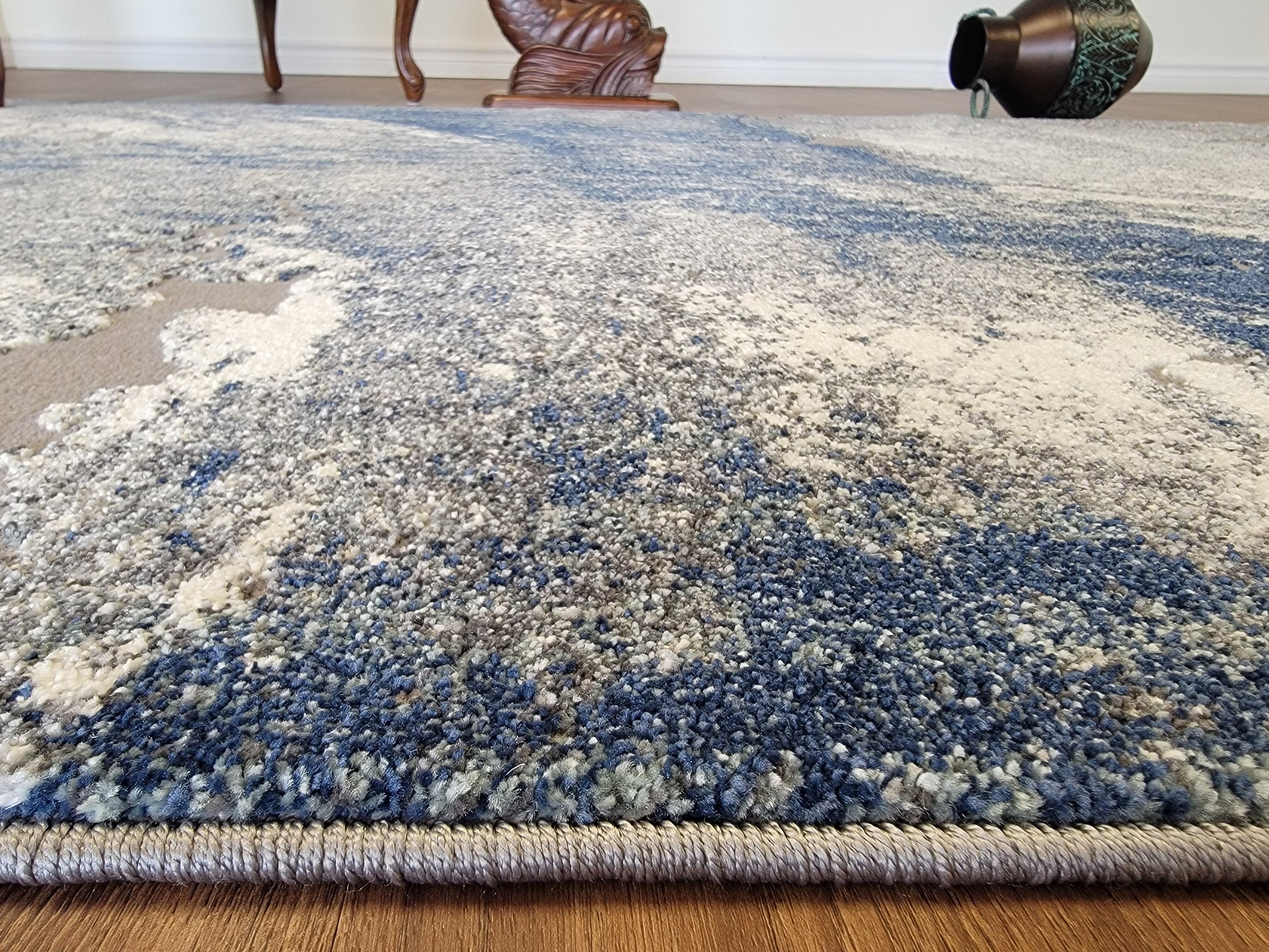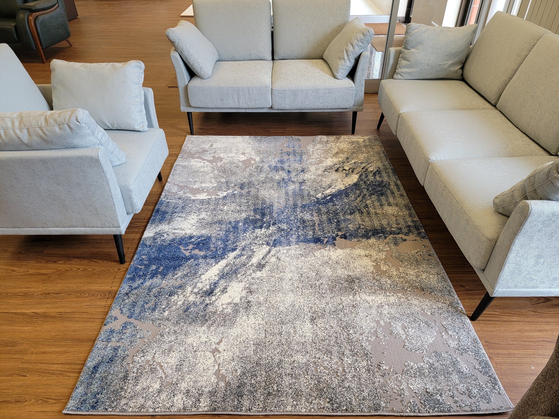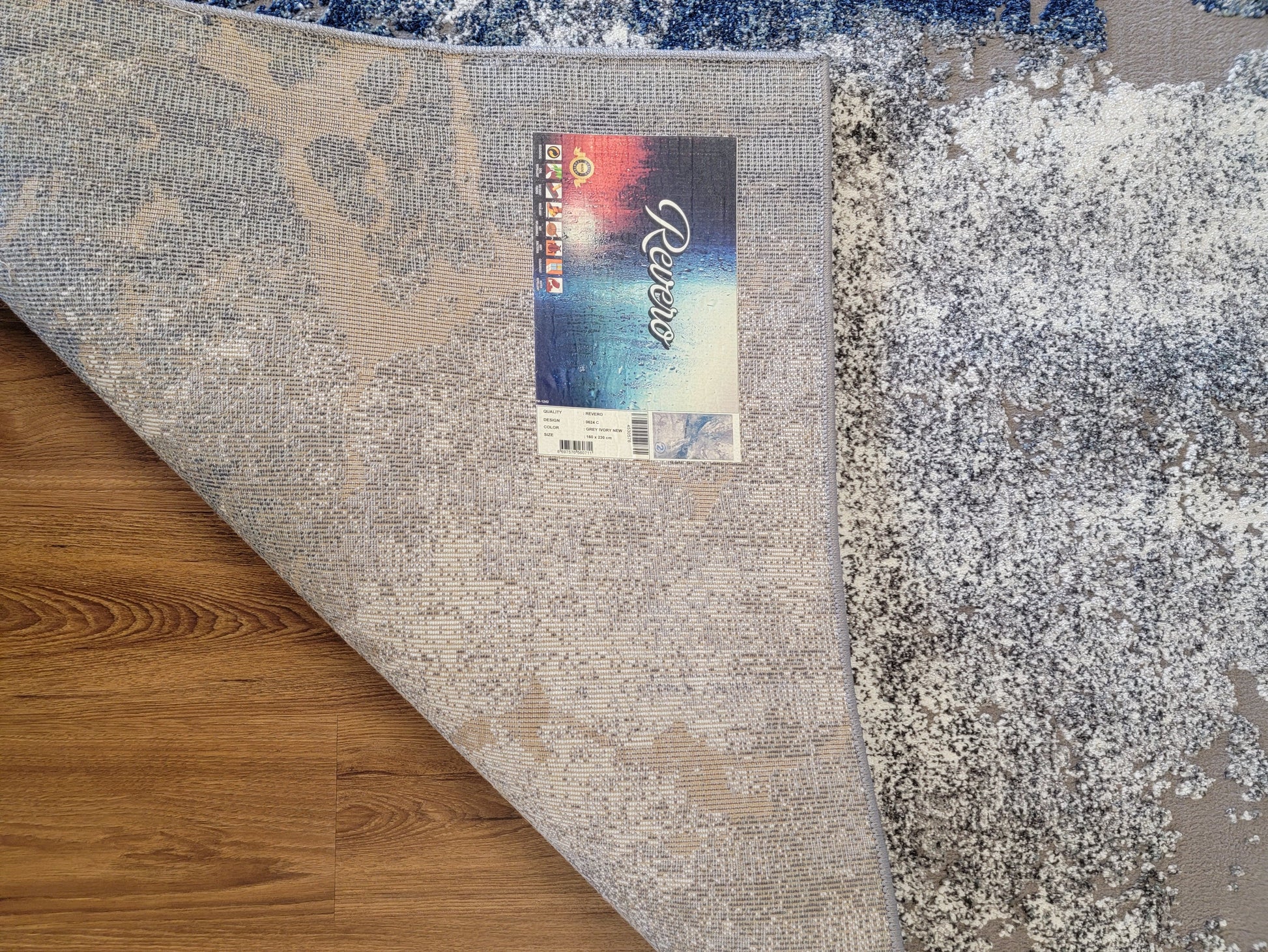 Revero Abstract Area Rug. Ivory, Cobalt Blue, and Gray